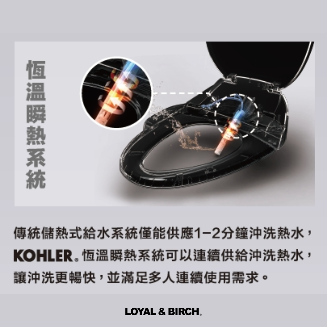 • KOHLER 免治馬桶蓋:搭載瞬熱式加熱技術,能快速提供恆溫的溫熱水