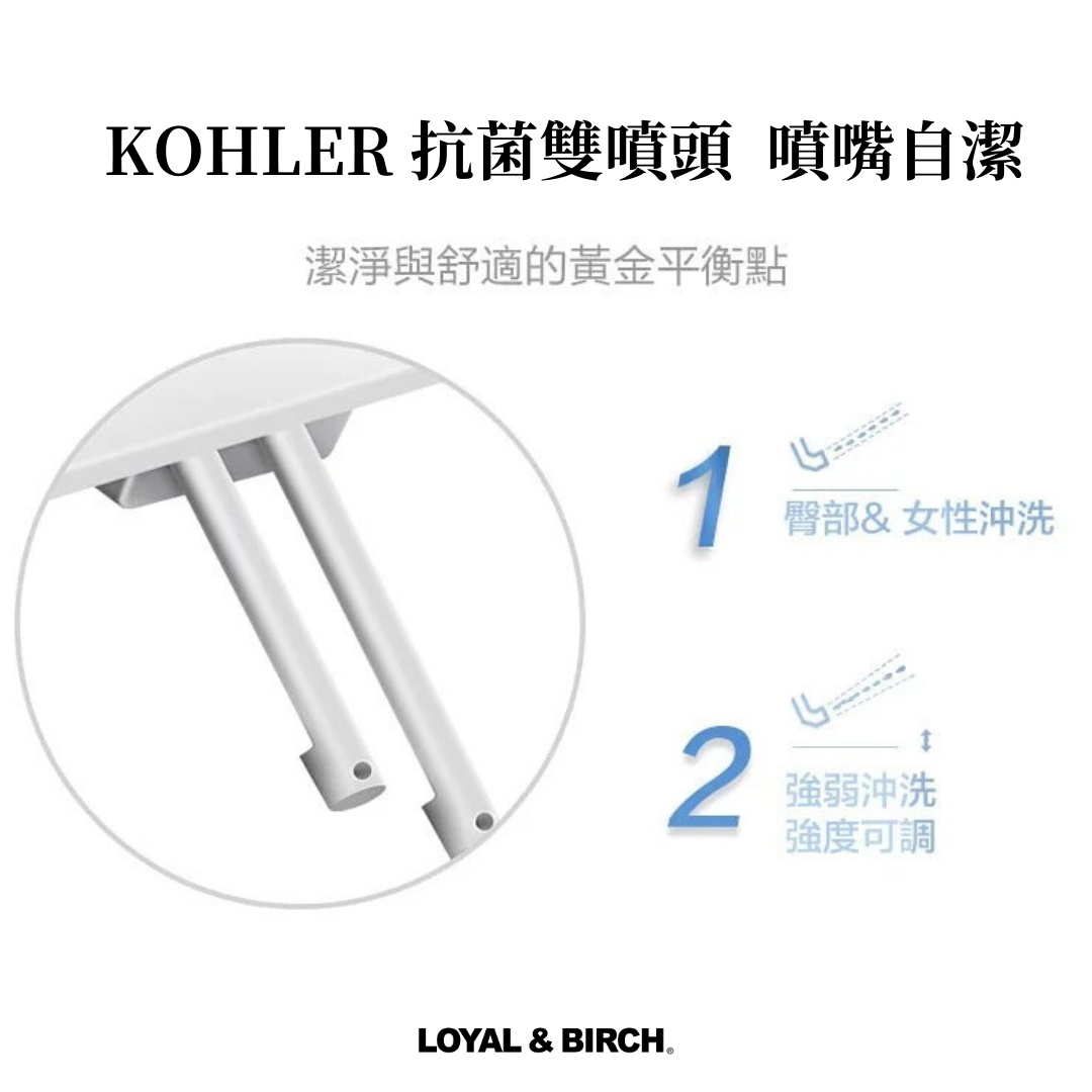 • KOHLER 免治馬桶蓋:可調節沖洗力度,提供輕柔至強力多種選擇,以滿足不同使用者的需求